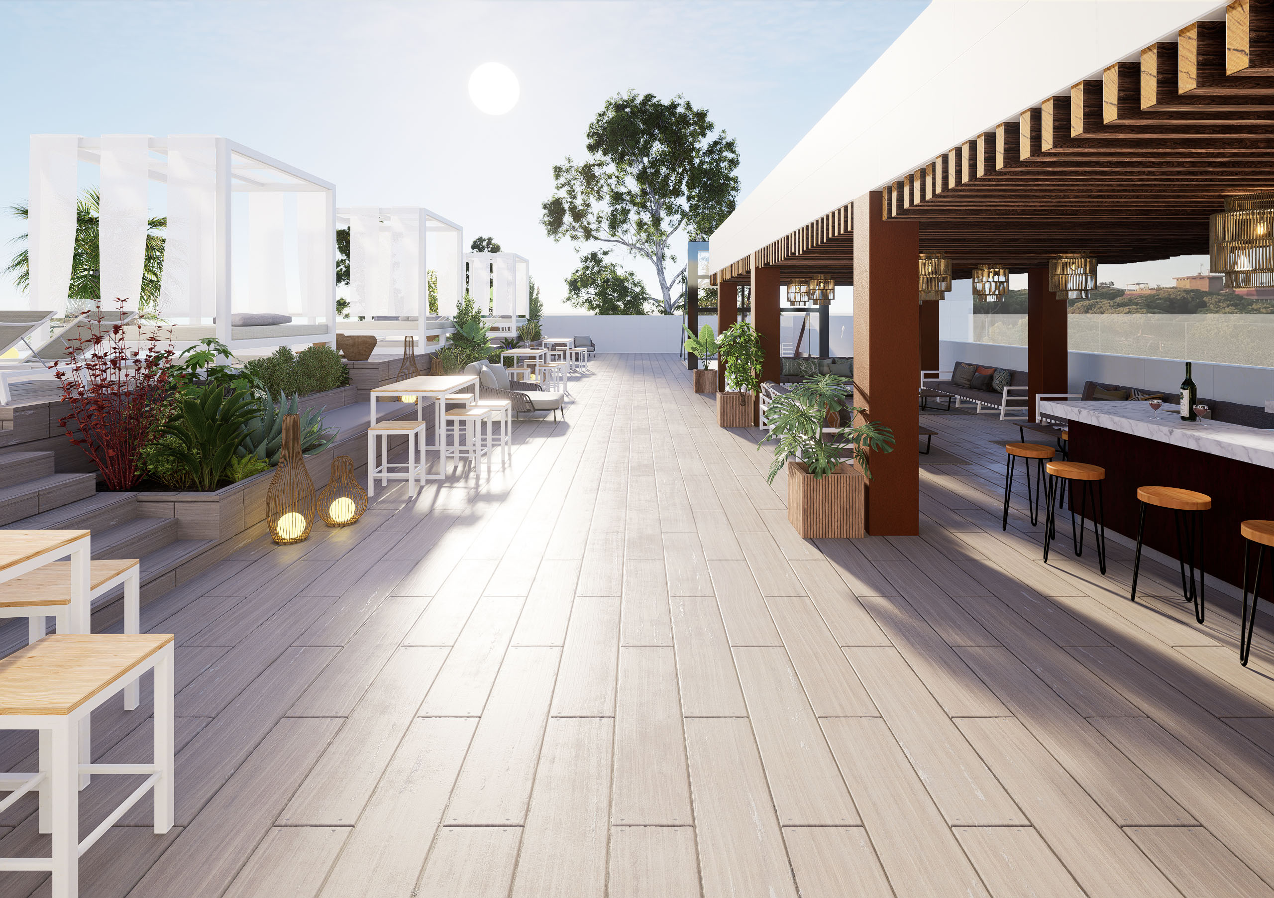 The goal of my work arose from the need to present the various spaces of the hotel in a clean and clear manner. The renders were projected during an exhibition event.